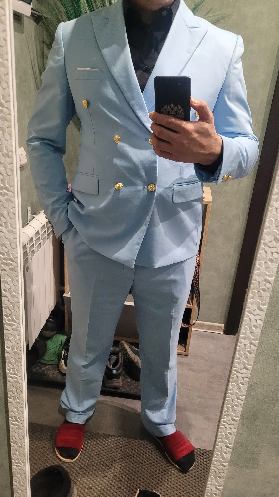 The suit is not bad, but do not expect much bling. For my size 52 I took 4XL, fit perfectly but the pants are wide, we will fix it. The seller Thank you very much.